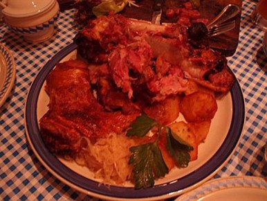脆香燒豬和薯仔、黑森林火腿和煙腸、德國香腸拼盤(三款)、薯蛋糕和煎蛋德國香腸