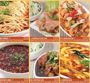 香糟醉雞,紅燒迷你獅子頭,嫩雞煨麵,成都水煮魚,上海香酥豬扒
