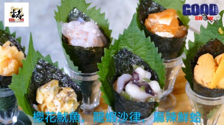 刺身:象拔蚌,挪威三文魚,北海道帶子,希靈魚,日本油甘魚,北寄貝,珍寶赤海蝦,深海八爪魚,酒煮榮螺片,貴妃密汁鮑片,虎蝦刺身,甜玉子,俄羅斯甜蝦