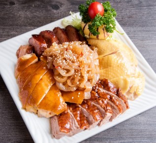梅子脆燒鴨、食神叉燒飯、特制鹽香雞(燒味類)